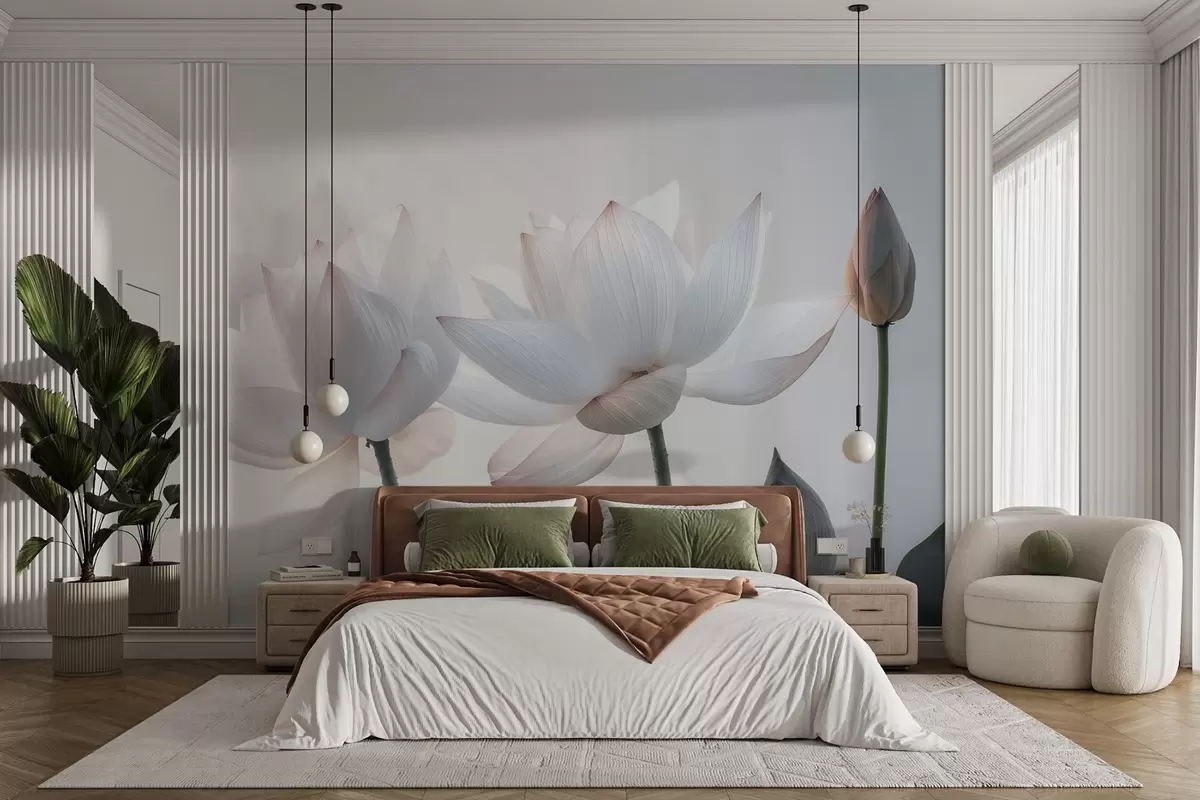 Fotomurales Suaves flores de loto con pétalos y hojas Nr. w08488