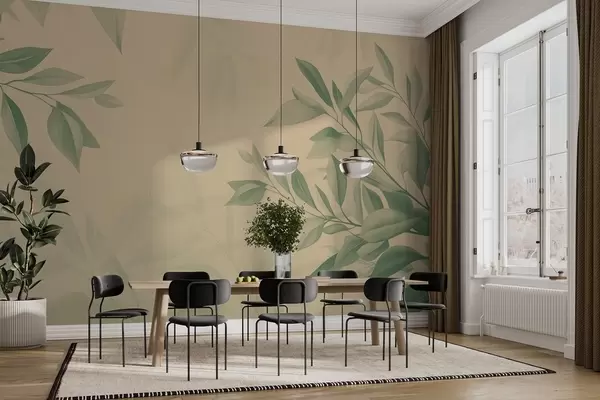 Fotomurales Hojas verdes con un suave fondo beige cálido Nr. w08499v2