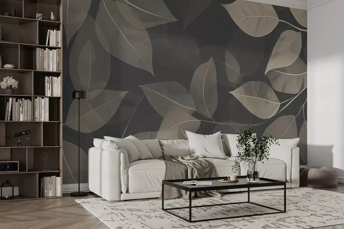 Fotomurales Ramas de hojas en tonos azules y grises Nr. w08502v1