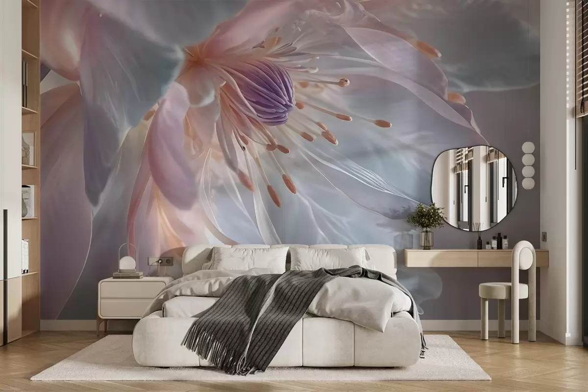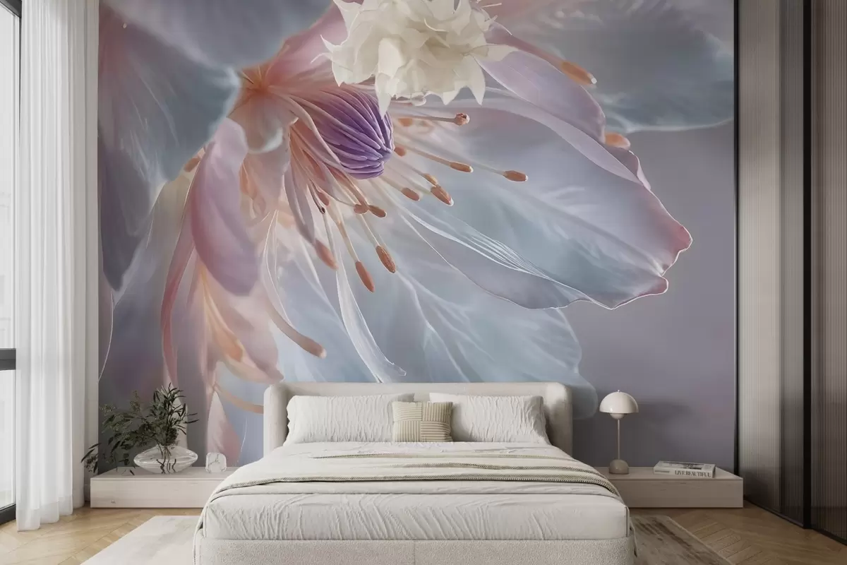 Fotomurales Primer plano de una delicada flor de color pastel con pétalos suaves y translúcidos y un centro vibrante Nr. w08605