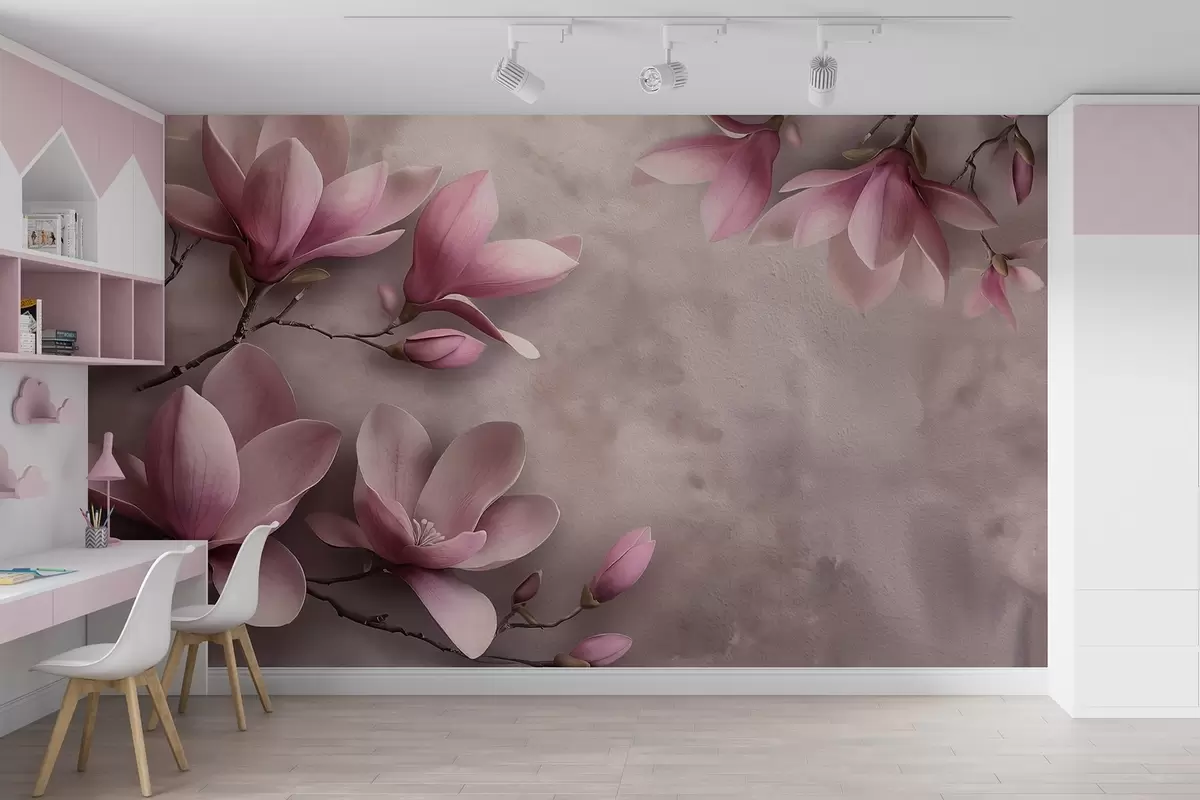 Fotomurales Delicadas magnolias rosas sobre un muro de hormigón Nr. w08636