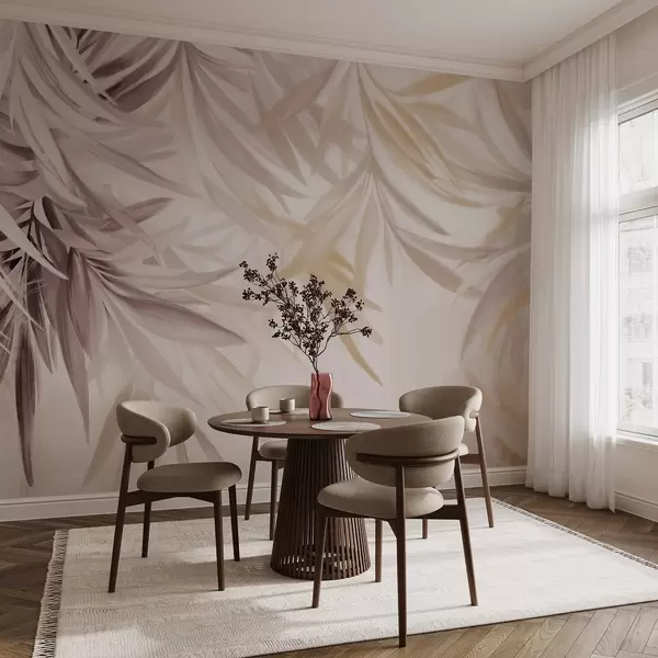 Fotomurales Suaves hojas tropicales de colores claros en tonos marrones y naranjas, que se funden en un estampado pálido y neutro Nr. w08703v1