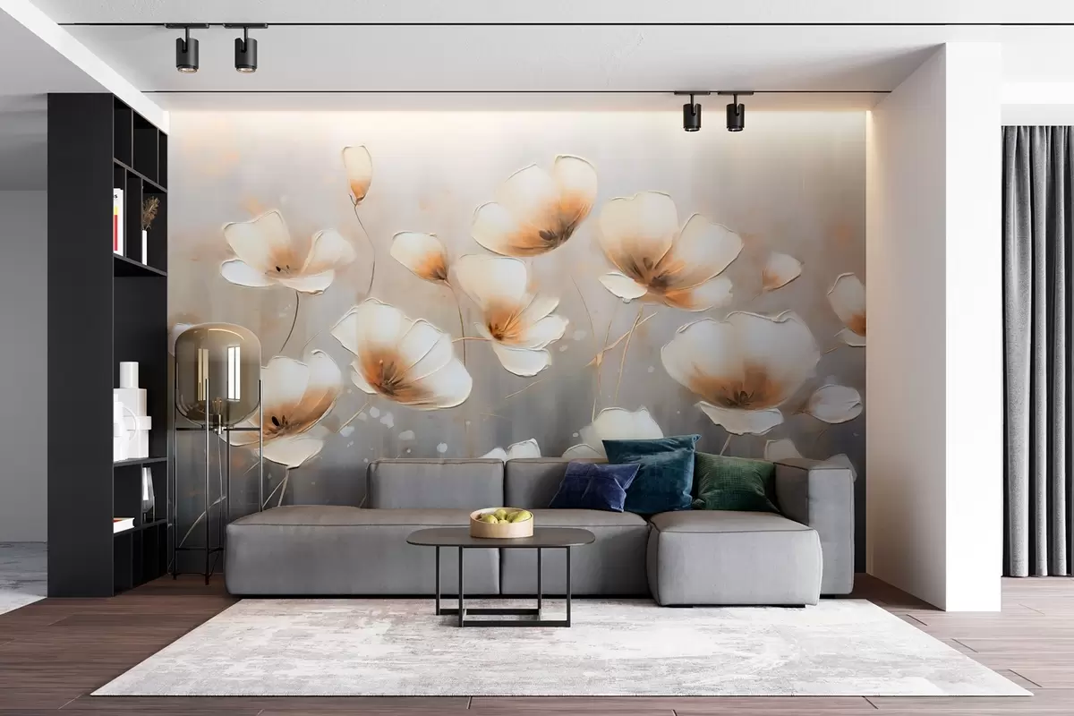 Fotomurales Elegantes flores con delicados y suaves pétalos en tonos beige-azulados Nr. w08746v1