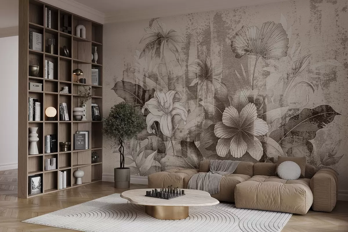 Fotomurales Diseño vintage con flores y plantas exóticas Nr. w08767v2
