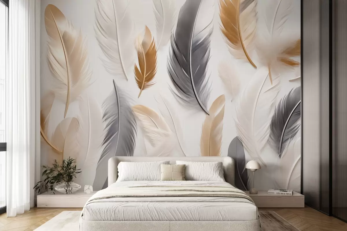 Fotomurales Plumas beige-gris en tonos suaves y tranquilos Nr. w08955