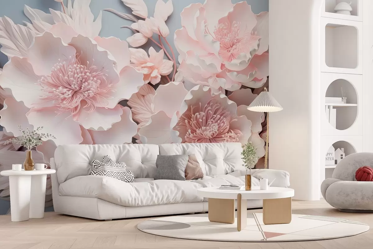 Fotomurales Voluminosas flores rosas en delicados tonos Nr. w08988