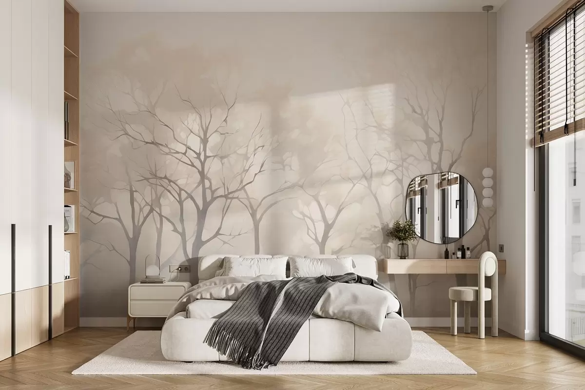 Fotomurales Árboles vintage monocromos en la niebla Nr. w09065