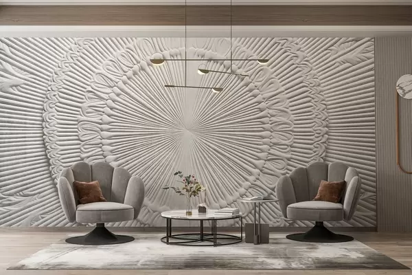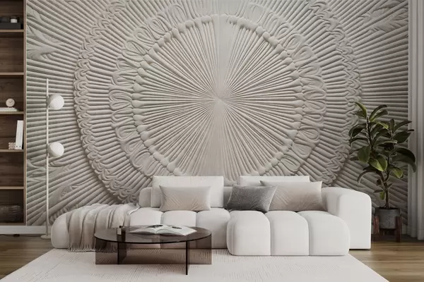 Fotomurales Estampado circular abstracto texturizado con líneas radiales y elementos decorativos, diseño simétrico, textura en relieve Nr. w09154