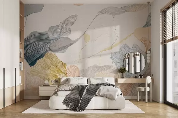 Fotomurales Hojas gráficas abstractas en tonos pastel cálidos y fríos Nr. w09222v1