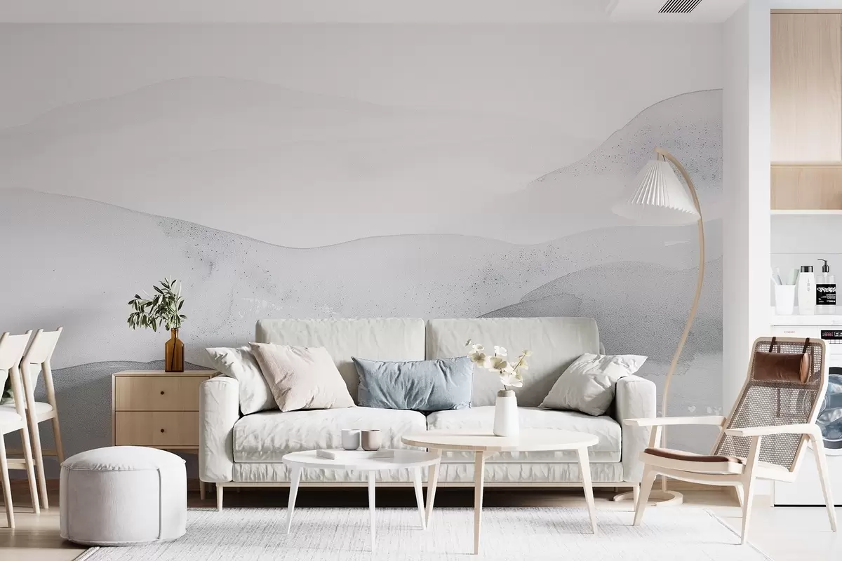Fotomurales Montañas neblinosas minimalistas en suaves tonos azules Nr. w09223v2
