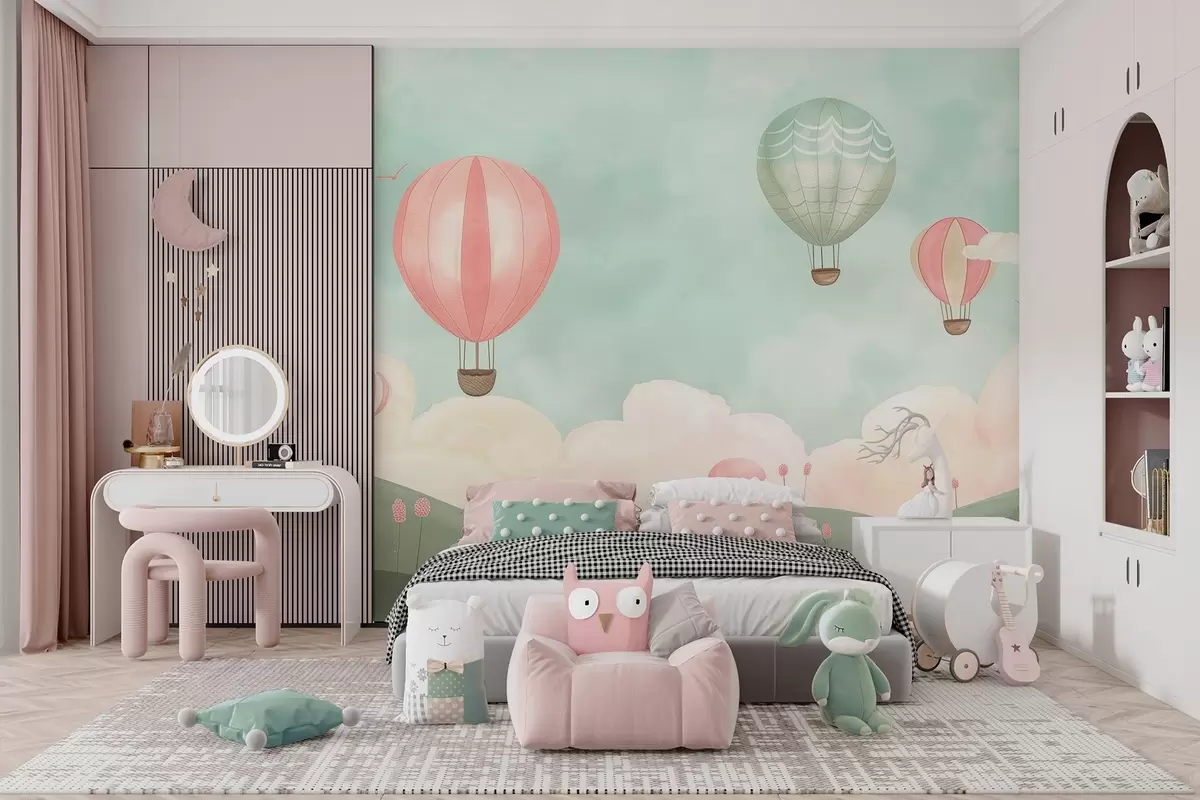 Fotomurales Globos aerostáticos sobre colinas con nubes Nr. w09228