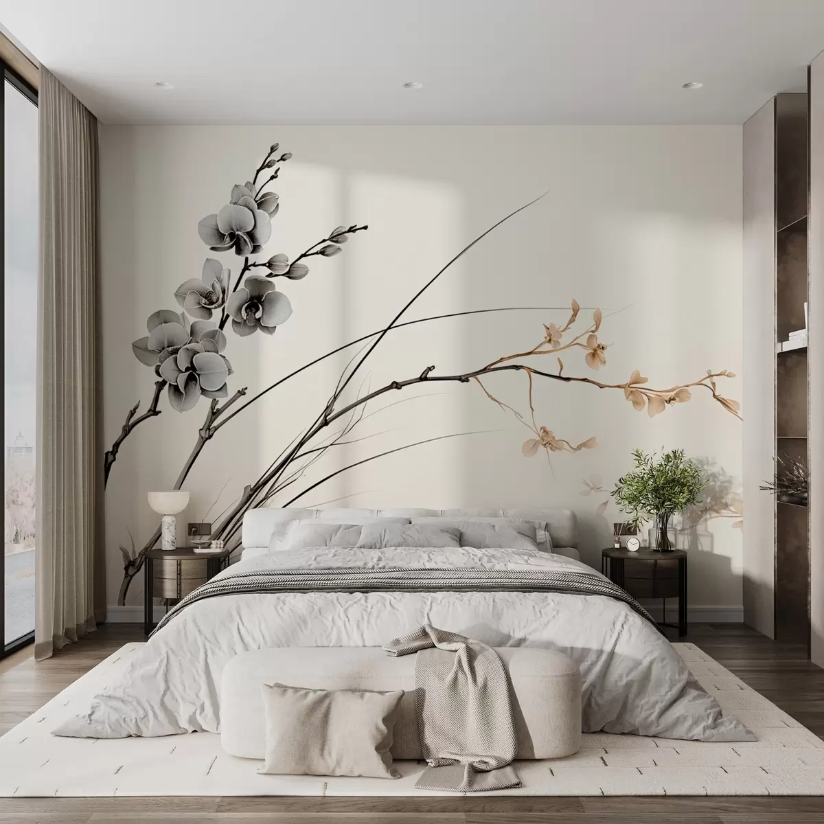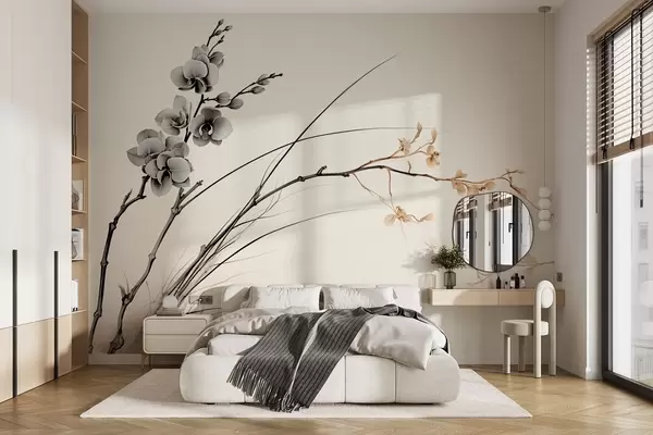 Fotomurales Rama de orquídea minimalista en suaves tonos sepia y grises Nr. w09250