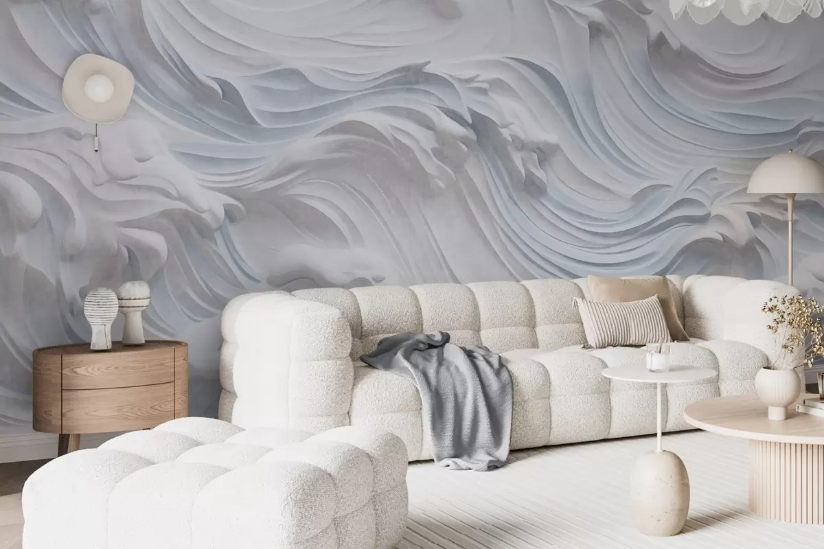 Fotomurales Olas oceánicas abstractas de color blanco y azul claro con textura y espuma, que fluyen de izquierda a derecha, impresión dinámica y con textura Nr. w09266