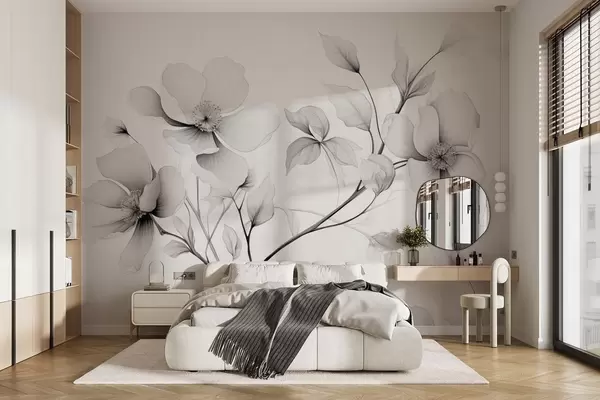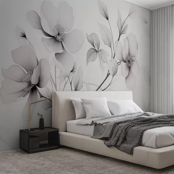Fotomurales Flores blancas y negras de líneas elegantes sobre fondo gris Nr. w09271