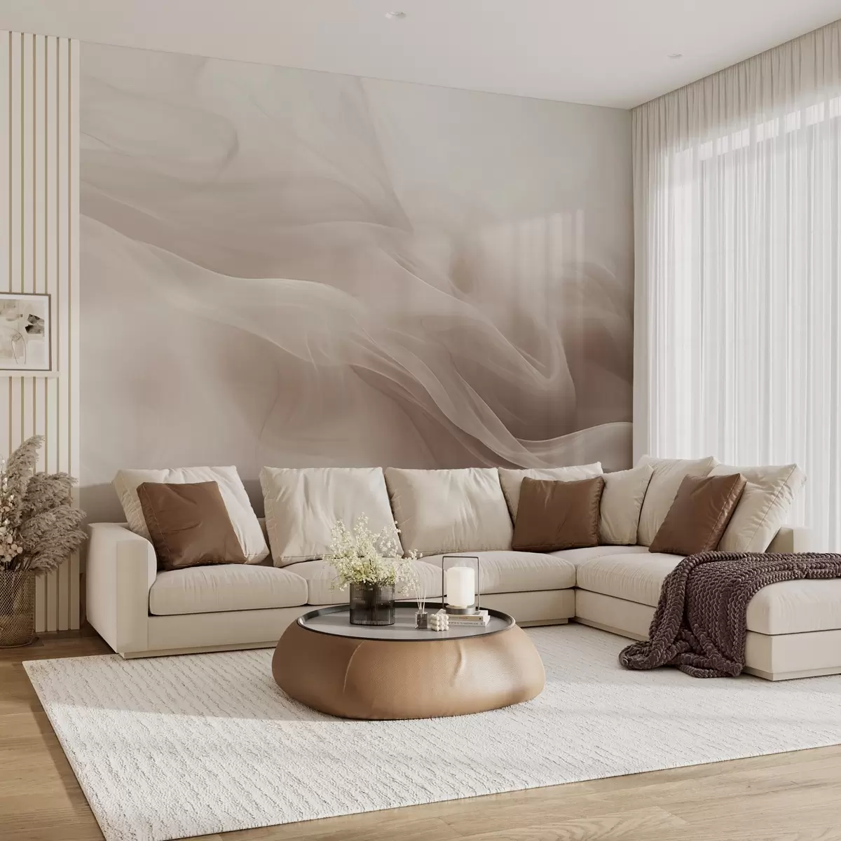 Fotomurales Suaves ondas ahumadas beige de estilo abstracto Nr. w09273v1