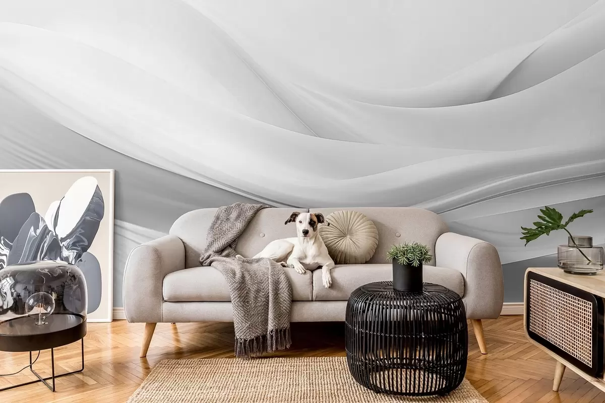 Fotomurales Ondas de tela gris en estilo abstracto minimalista Nr. w09279v1