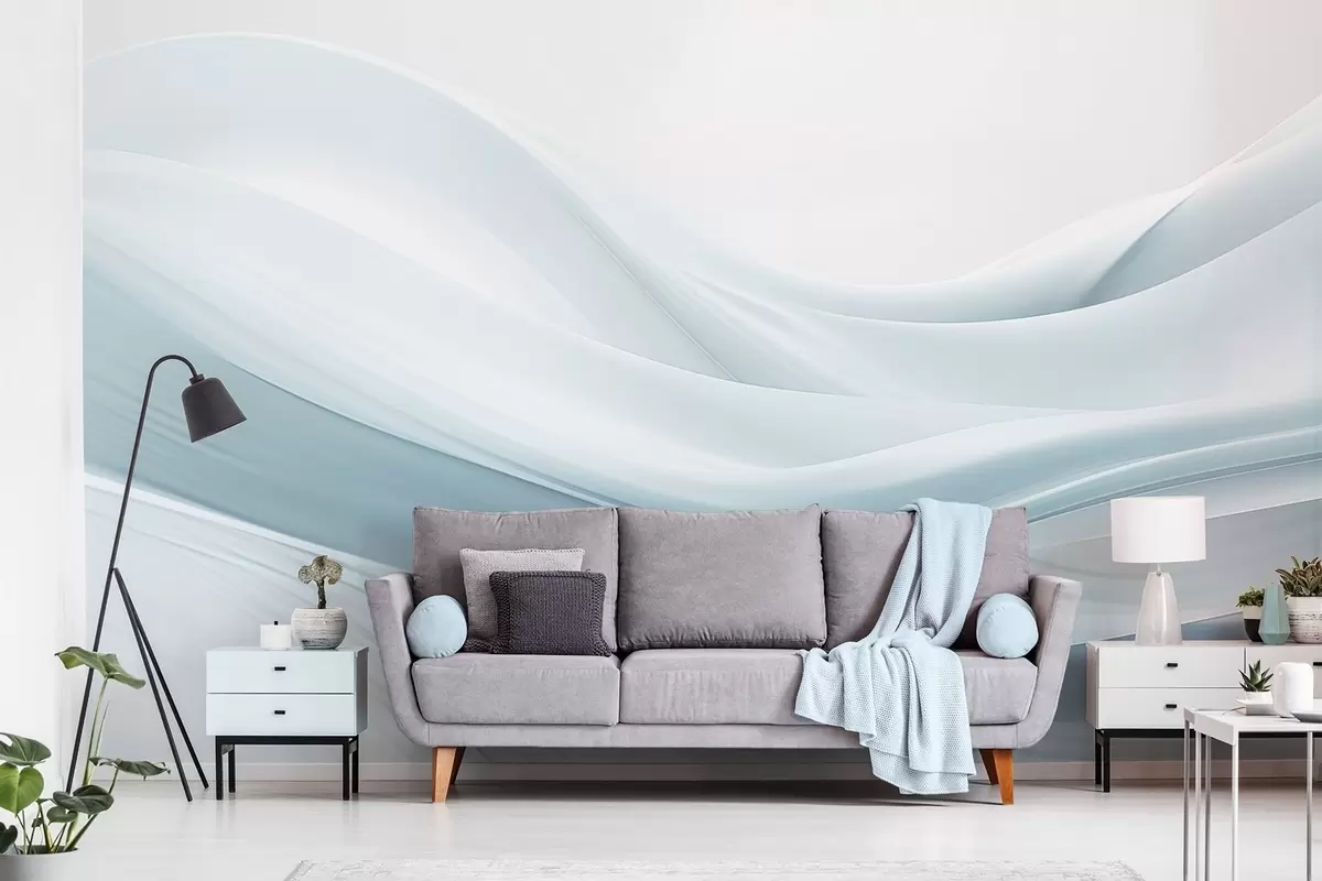 Fotomurales Ondas de tela azul en estilo abstracto minimalista Nr. w09279v2