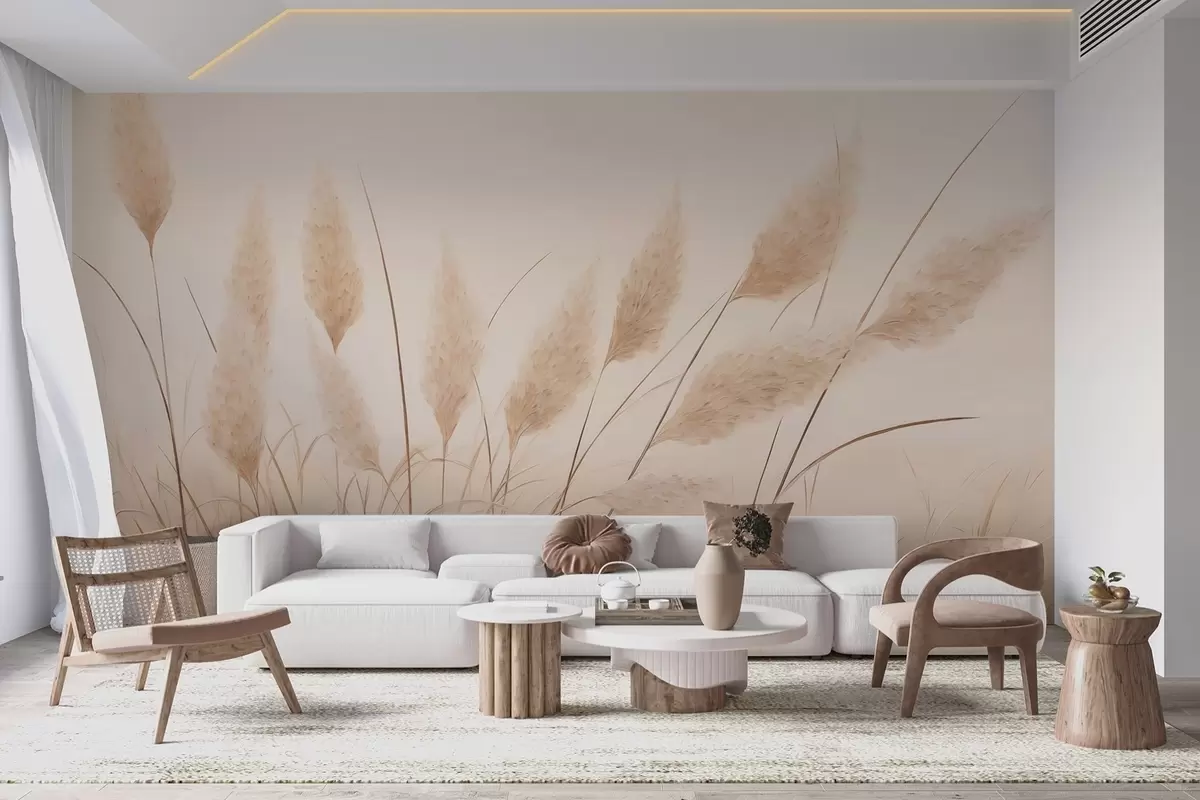 Fotomurales Hierba pampa de color beige suave en el campo Nr. w09324