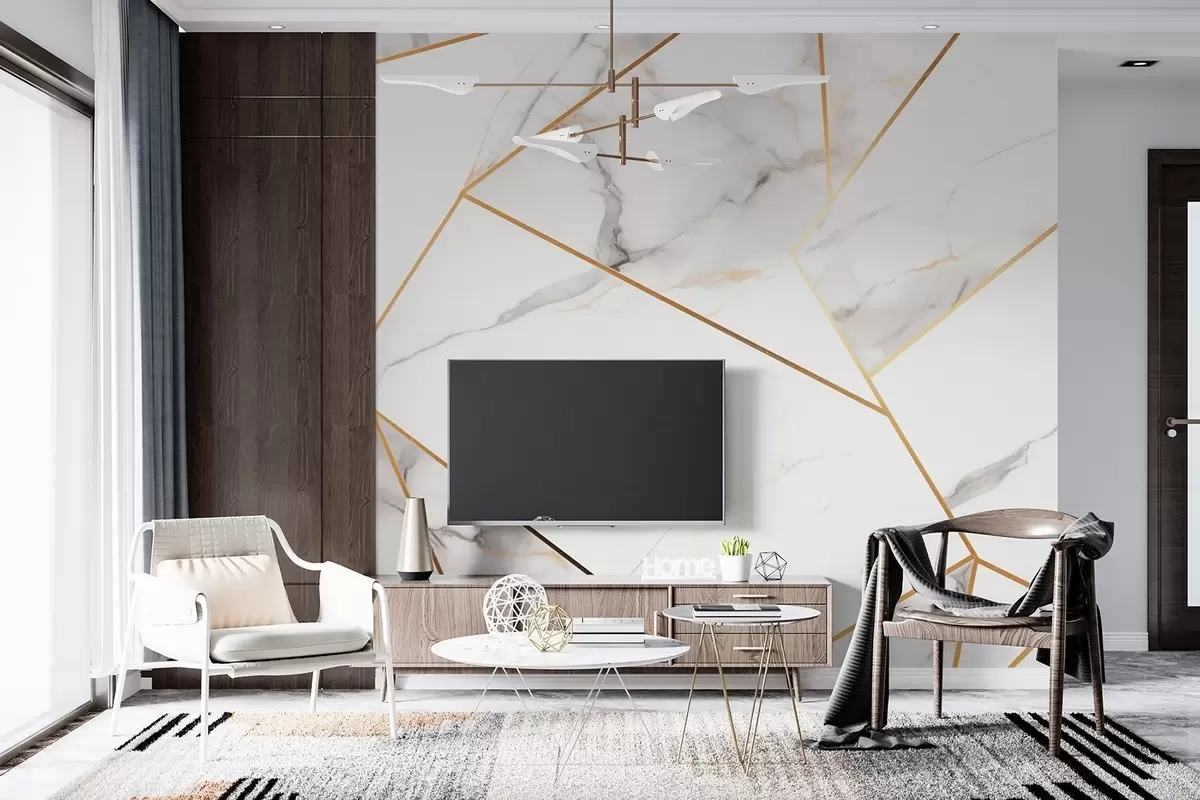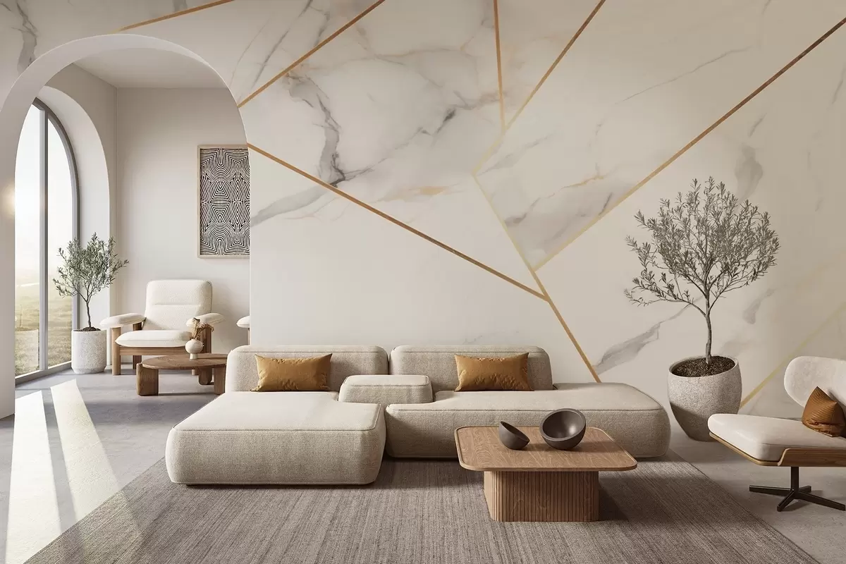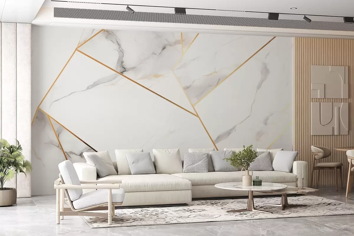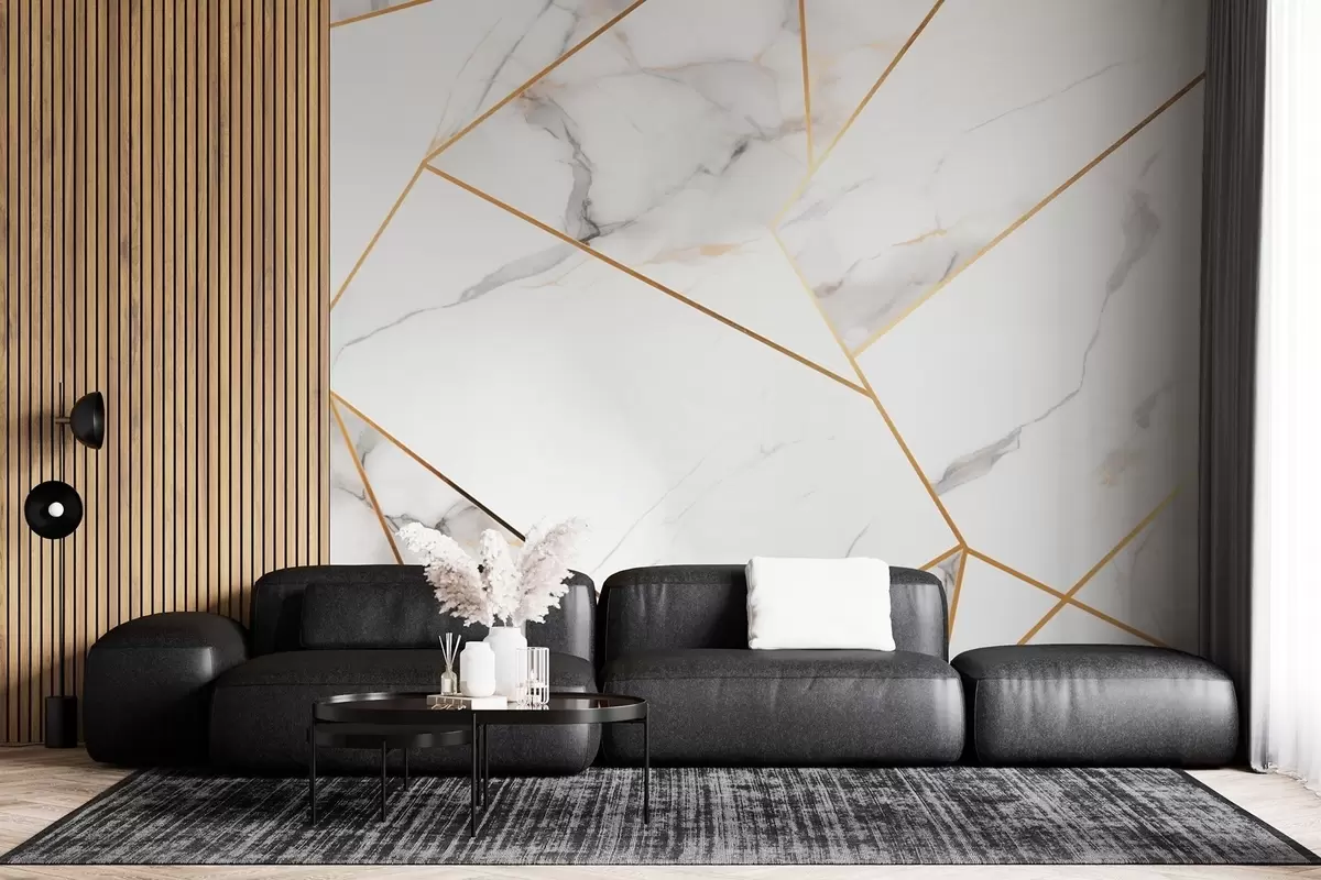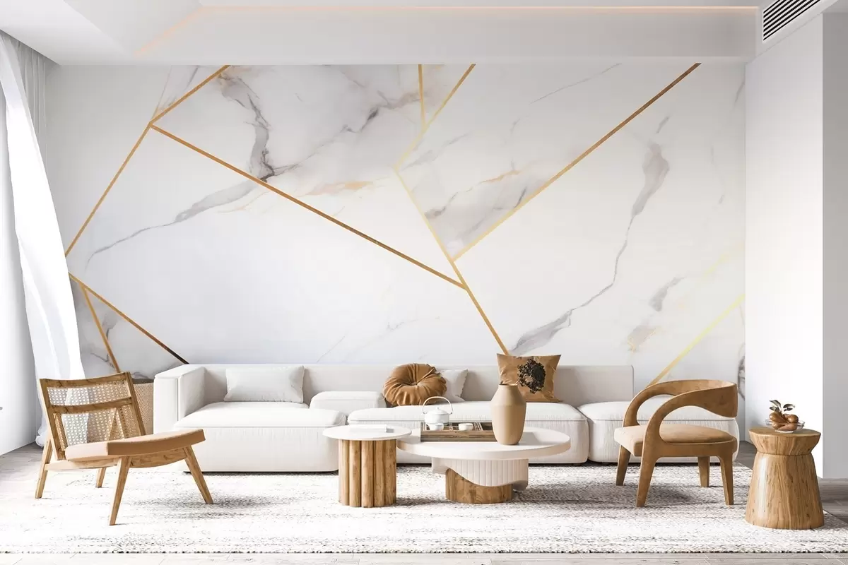 Fotomurales Imitación de una superficie de mármol con un patrón geométrico amarillo Nr. w09363