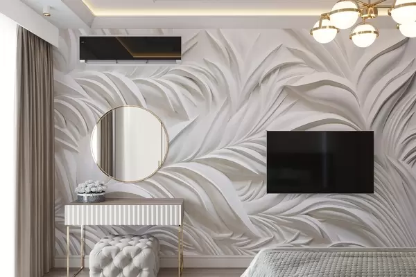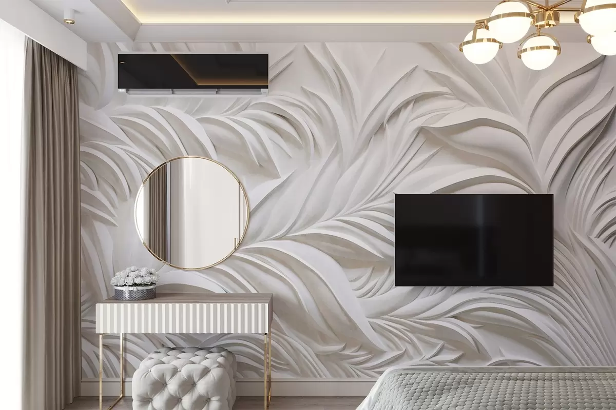 Fotomurales Textura abstracta de hojas blancas y elementos florales, estética minimalista Nr. w09378