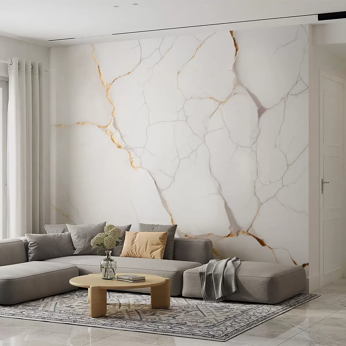 Fotomurales Imitación de mármol con finas grietas y vetas amarillas Nr. w09390