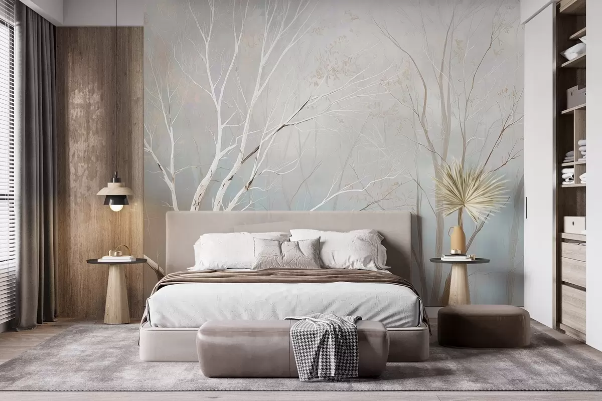 Fotomurales Ramas ligeras en la niebla matinal en tonos pastel Nr. w09447