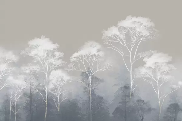 Fotomurales Árboles minimalistas en tonos azul grisáceos, en la niebla Nr. w09448