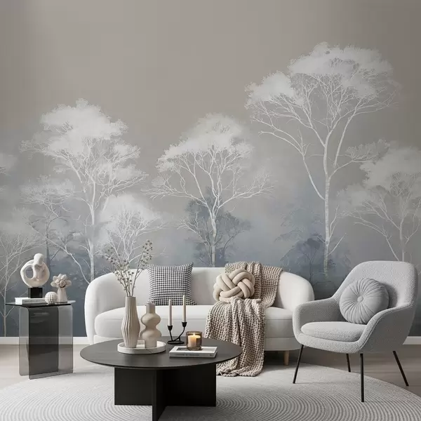 Fotomurales Árboles minimalistas en tonos azul grisáceos, en la niebla Nr. w09448