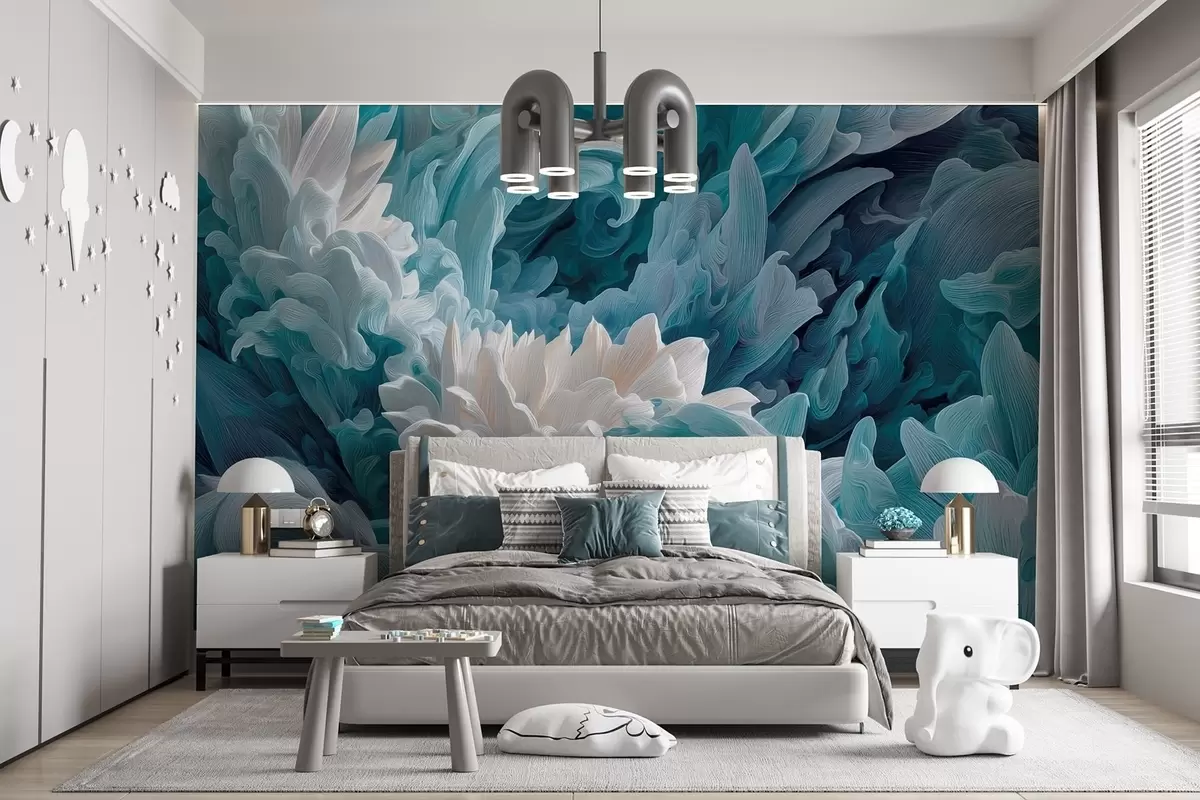 Fotomurales Danza de pétalos y olas del mar en tonos azules Nr. w09454