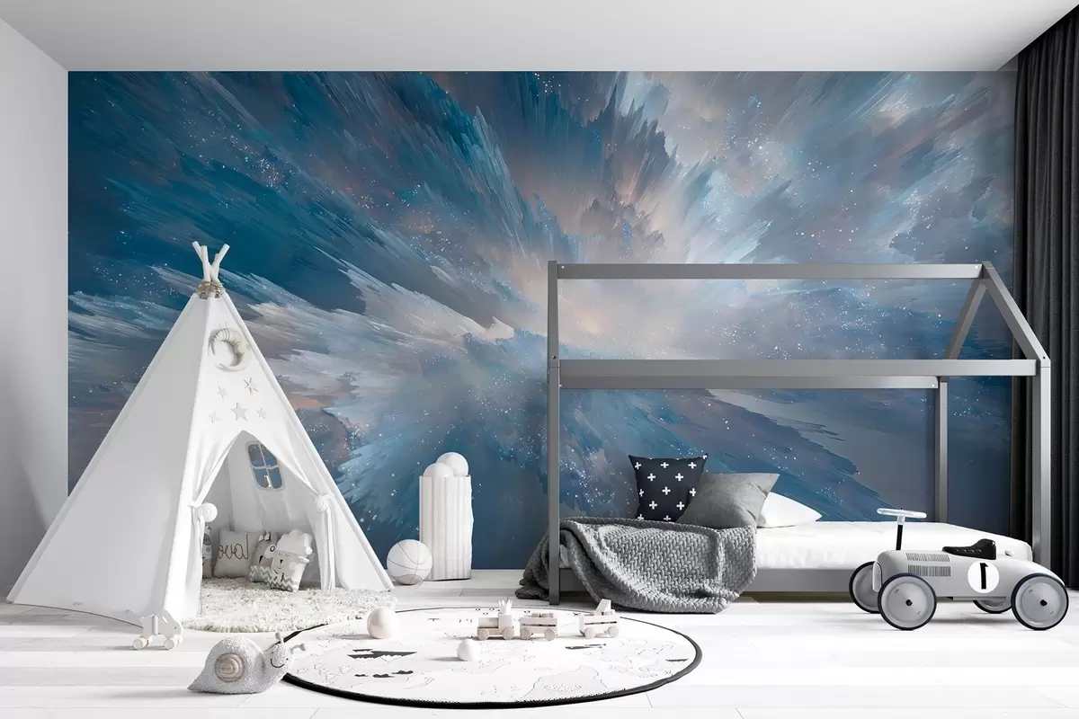 Fotomurales Resumen del resplandor cósmico del cielo en tonos azules helados. Nr. w09461