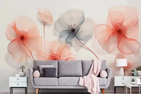 Fotomurales Flores translúcidas en tonos rojos y azules Nr. w09515