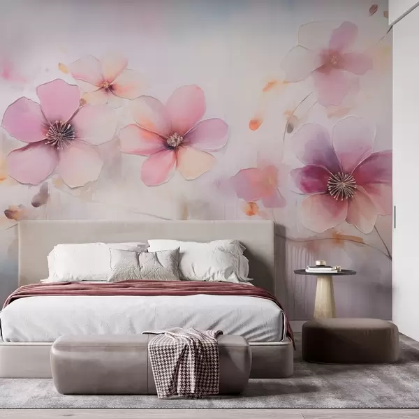 Fotomurales Rama con flores rosas en estilo acuarela Nr. w09522