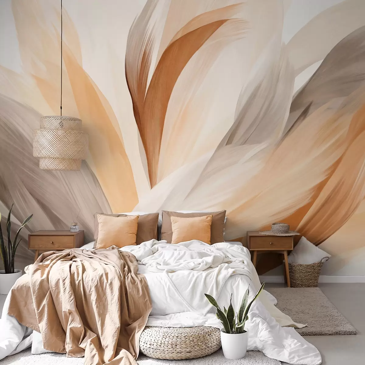 Fotomurales Plumas abstractas con textura en marrón, blanco y gris y varios tonos, superpuestas sobre un fondo blanco Nr. w09531