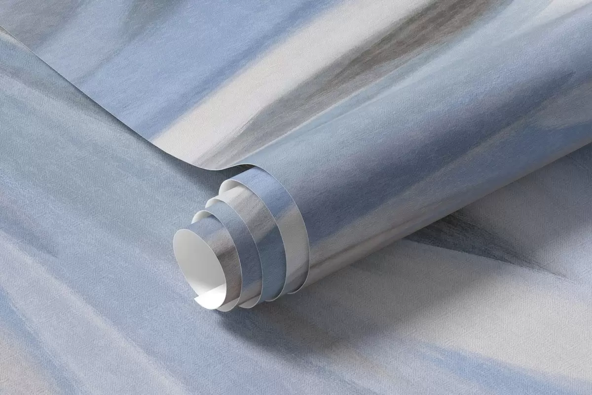 Fotomurales Estilo de pintura abstracta con pinceladas texturizadas en blanco, azul y gris sobre un fondo suave y claro. Nr. w09552v1