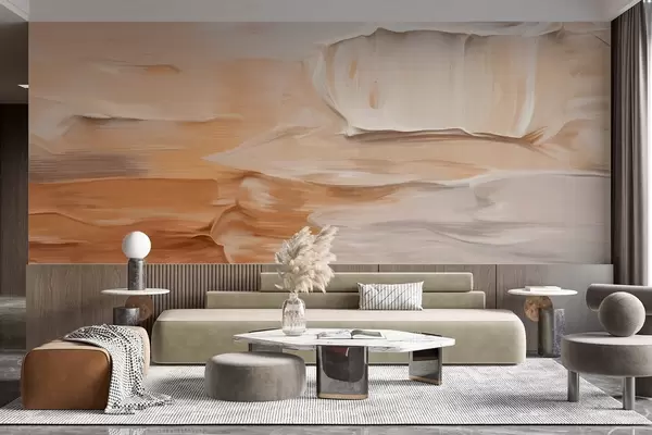 Fotomurales Imitaciones de pinceladas abstractas con textura en tonos cálidos y terrosos de beige, crema y marrón, arte moderno. Nr. w09588