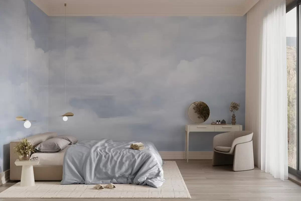 Fotomurales Cielo con textura pastel lleno de nubes blancas con una estética suave y minimalista. Nr. w09589