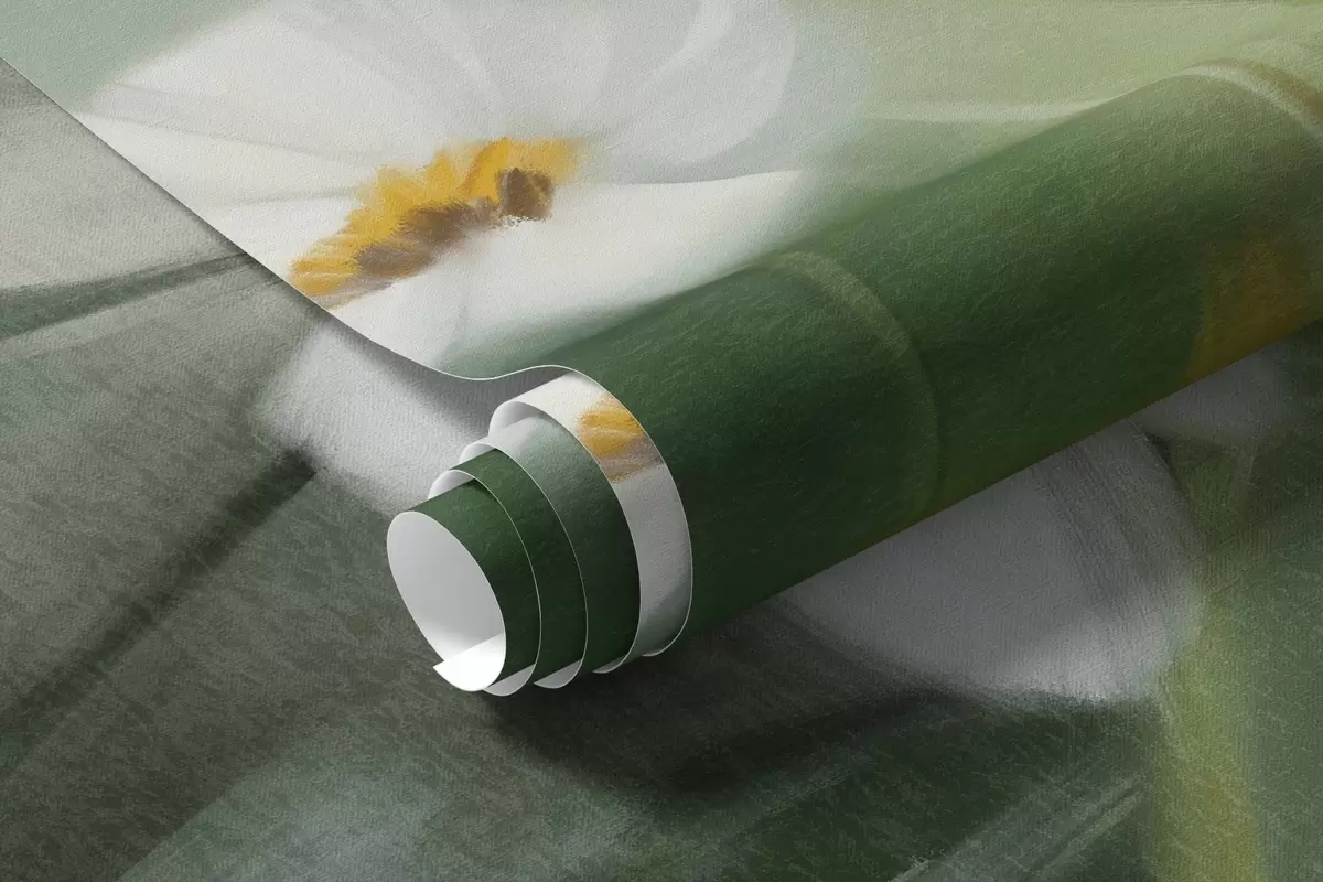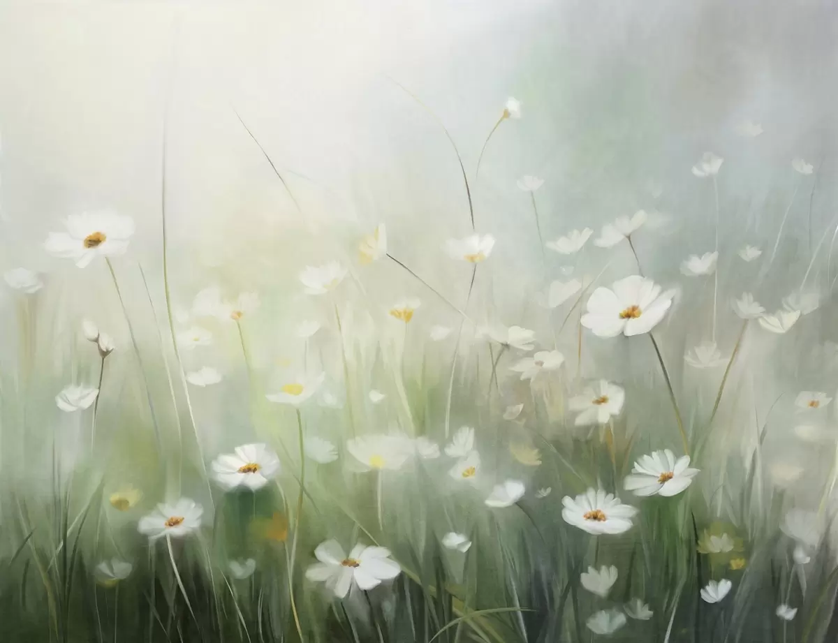 Fotomurales Campo abstracto de margaritas blancas con hierba verde y un fondo suave y difuso en estilo pictórico. Nr. w09619