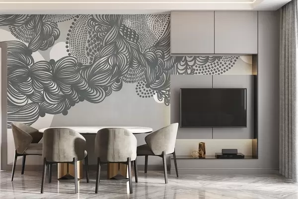 Fotomurales Diseño abstracto con textura sobre fondo gris, con líneas intrincadas y texturas punteadas. Nr. w09621v1