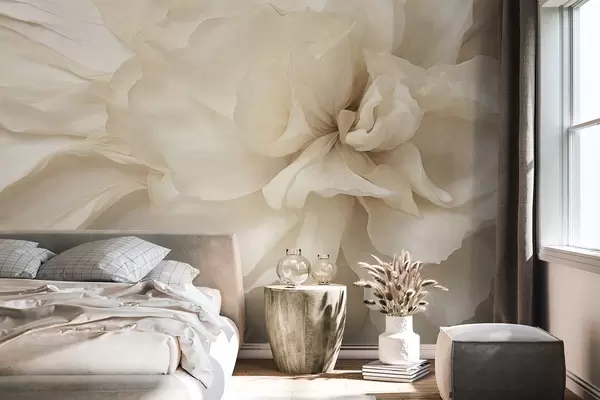 Fotomurales Flor delicada y texturizada, de color claro, con pétalos translúcidos y un fondo abstracto suave. Nr. w09632