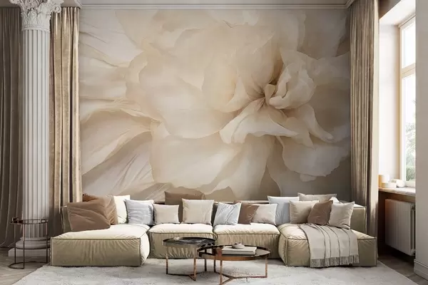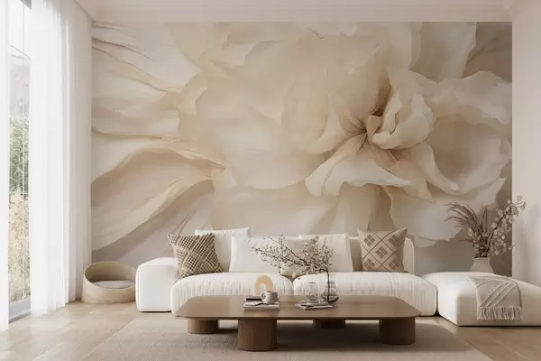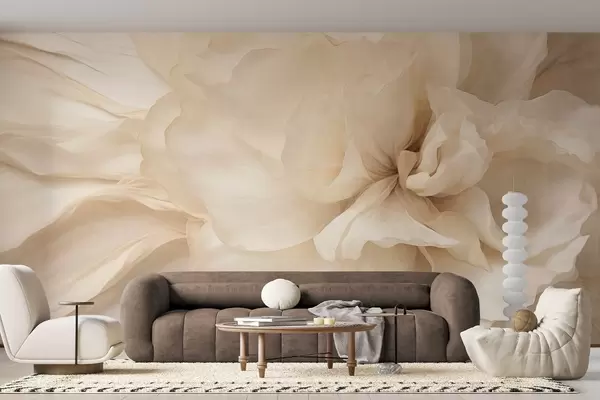 Fotomurales Flor delicada y texturizada, de color claro, con pétalos translúcidos y un fondo abstracto suave. Nr. w09632