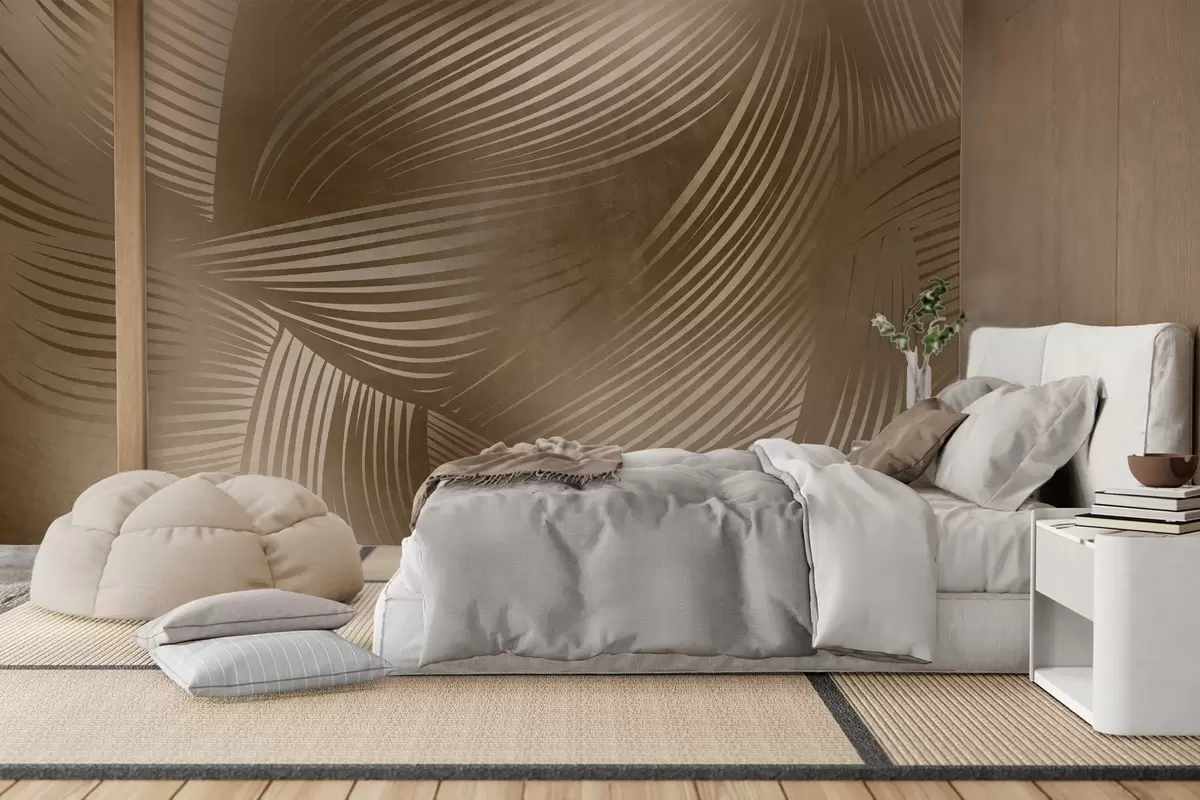 Fotomurales Estampado abstracto de líneas fluidas y curvas en tonos marrón oscuro que crean un efecto texturizado y moderno. Nr. w09646