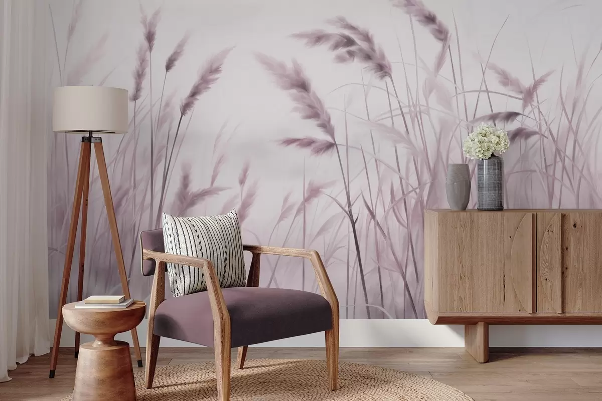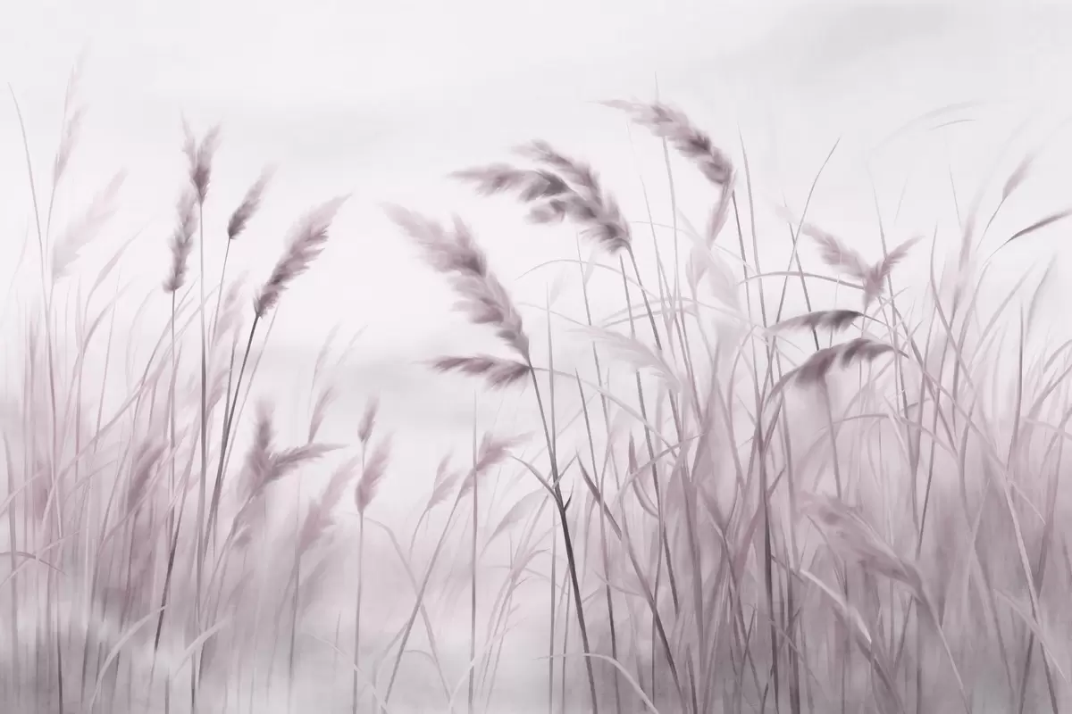 Fotomurales Hierba seca alta y texturizada con espigas de trigo en el campo sobre un fondo suave y pálido. Nr. w09648v2