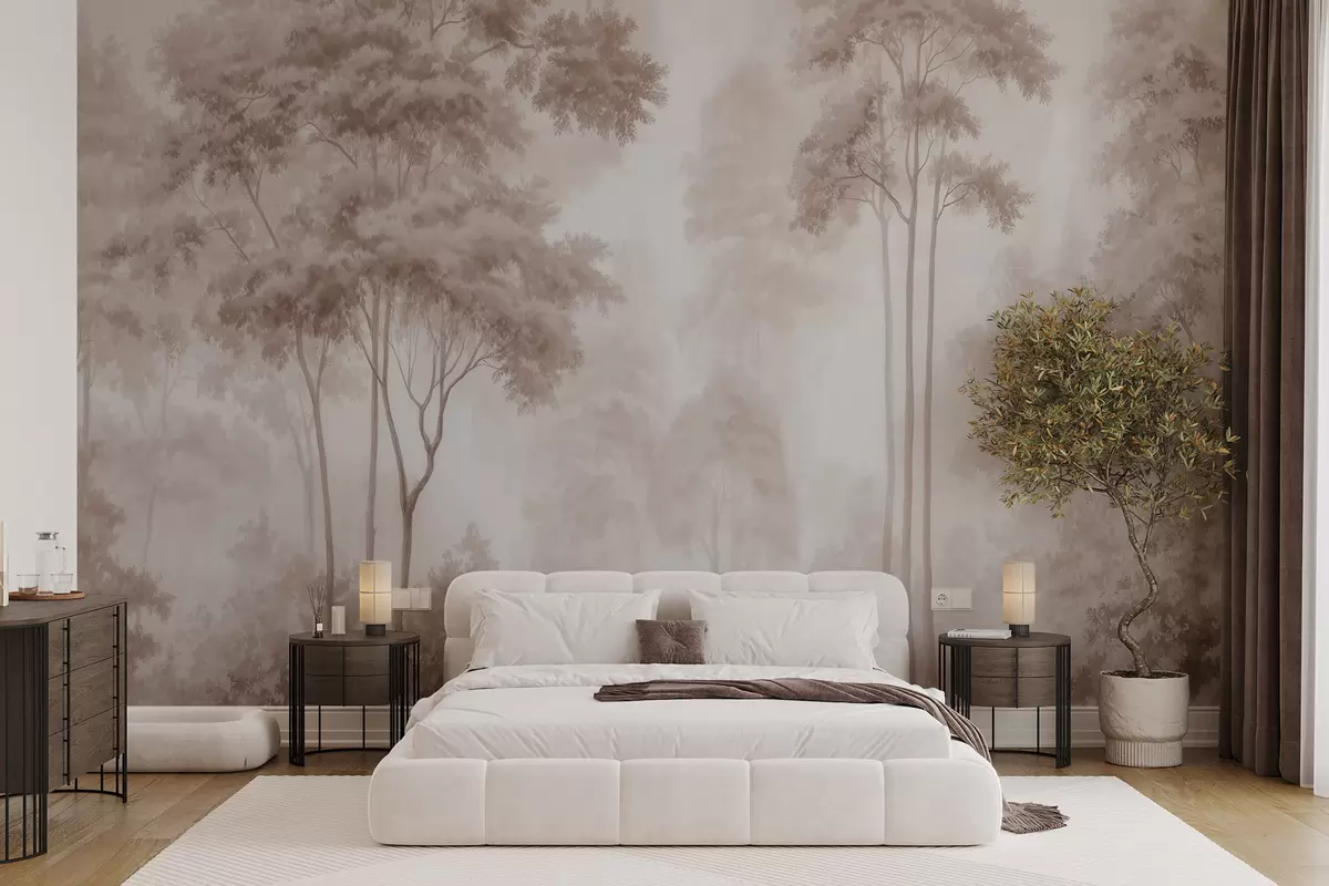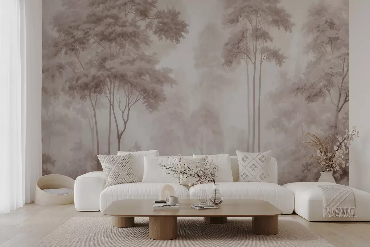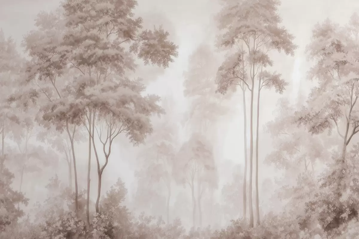 Fotomurales Paisaje forestal abstracto en tonos beige ahumados que transmite una sensación de profundidad Nr. w09657
