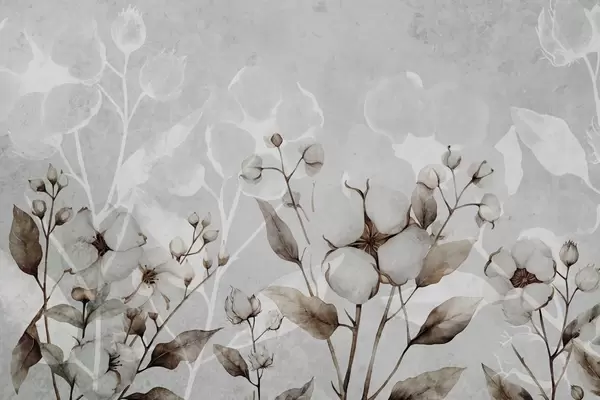 Fotomurales Grandes flores de algodón sobre fondo gris claro. Nr. w09691