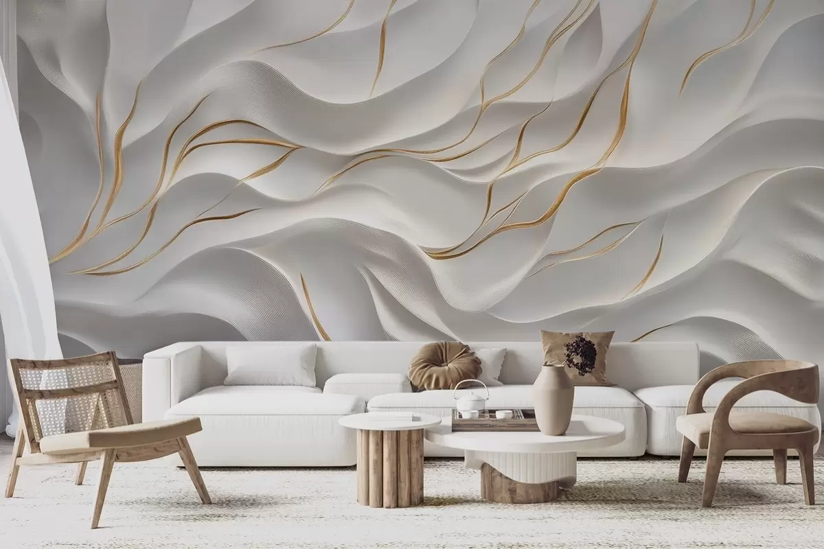 Fotomurales Ondas en relieve grises con detalles en amarillo Nr. w09724