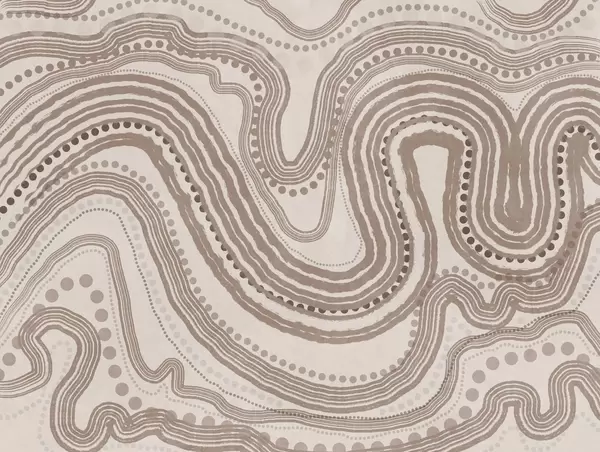 Fotomurales Líneas onduladas y puntos abstractos en verde y beige, arte moderno con textura. Nr. w09747