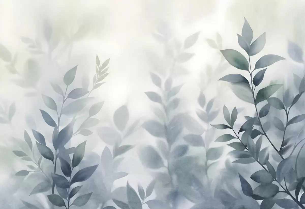 Fotomurales Ramas delicadas con hojas de color azul apagado, estilo de pintura acuarela, arte con textura. Nr. w09750v1