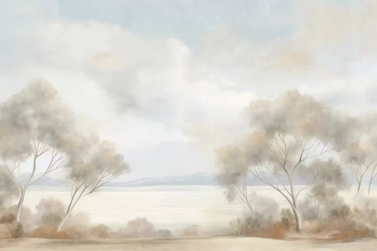 Fotomurales Un estilo de pintura con textura paisajística con árboles bajo un cielo nublado. Nr. w09753