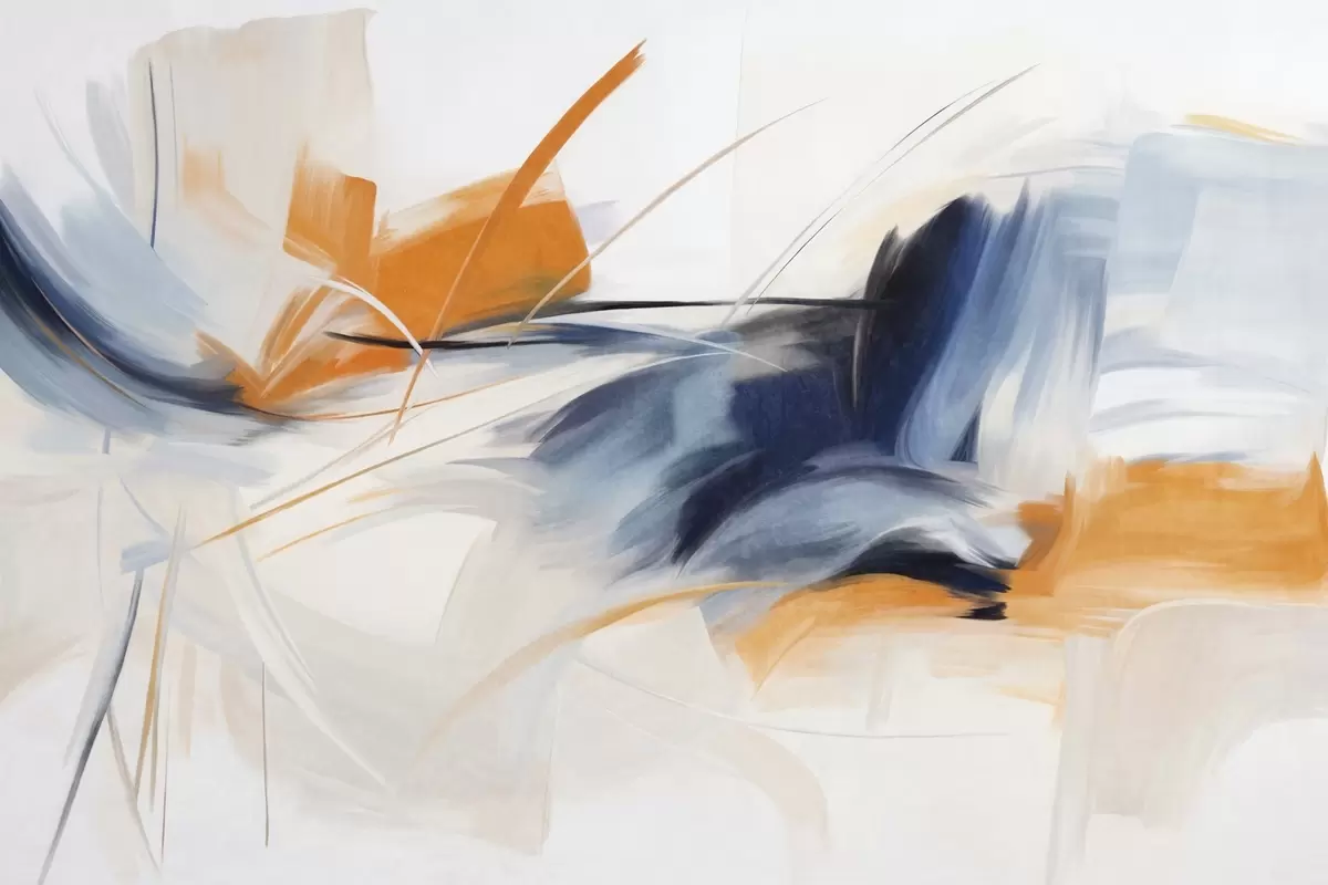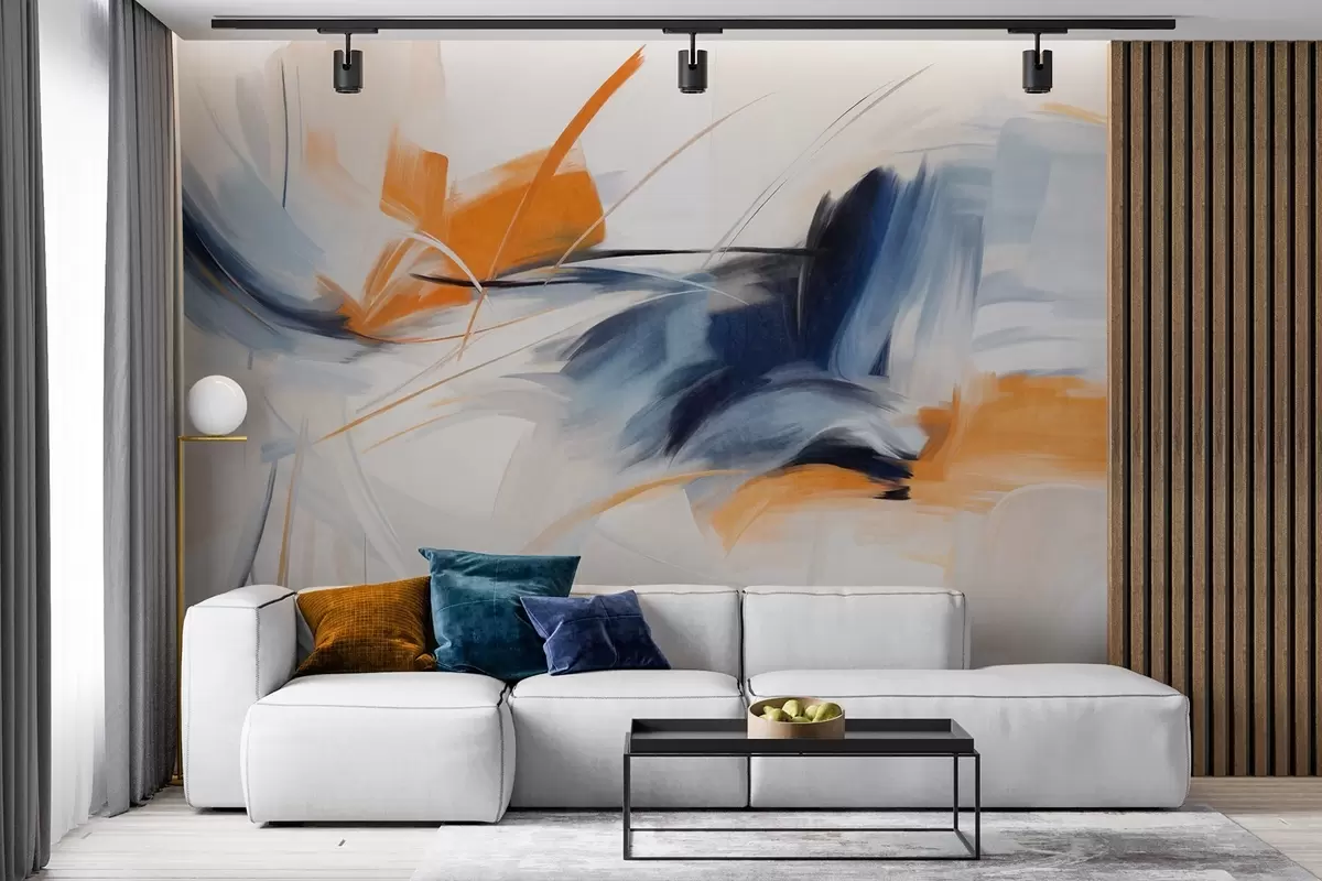 Fotomurales Estilo de pintura abstracta con pinceladas texturizadas en naranja y azul. Nr. w09755