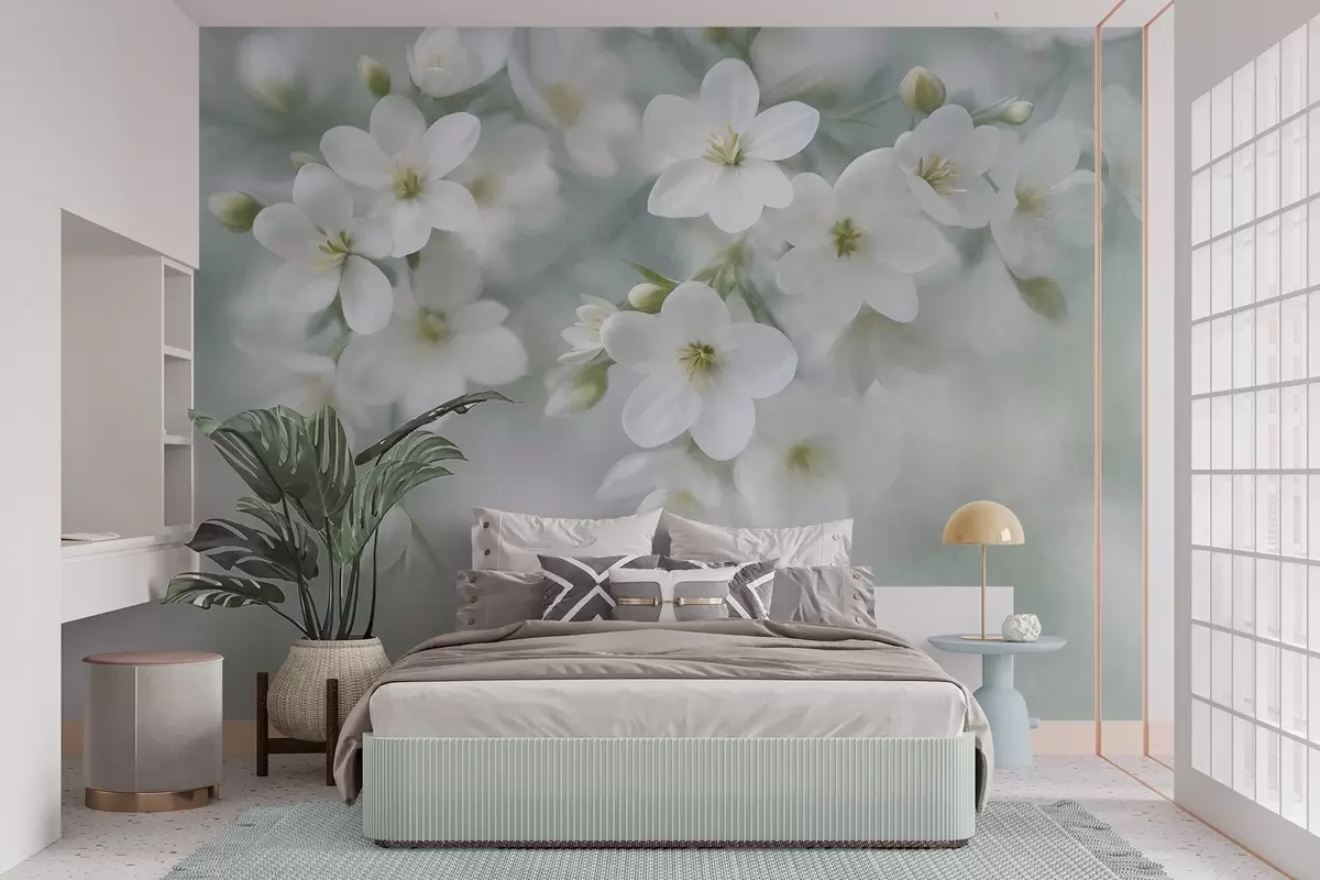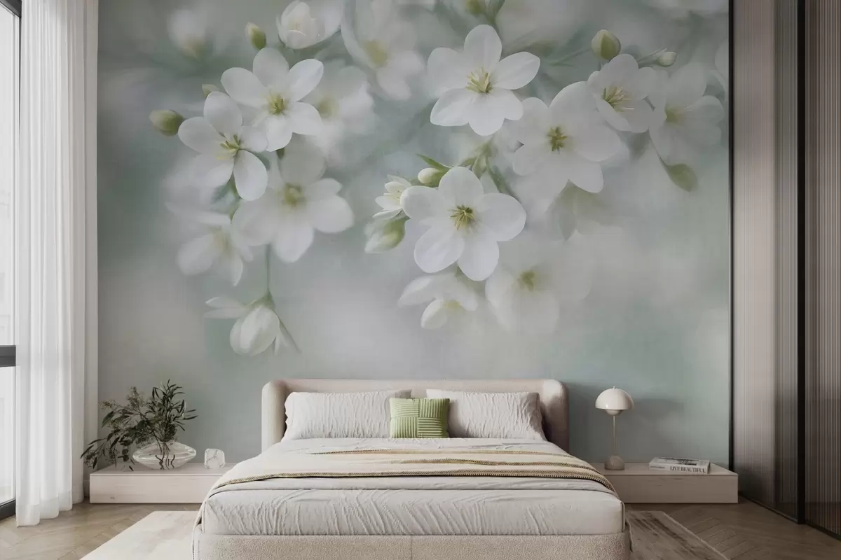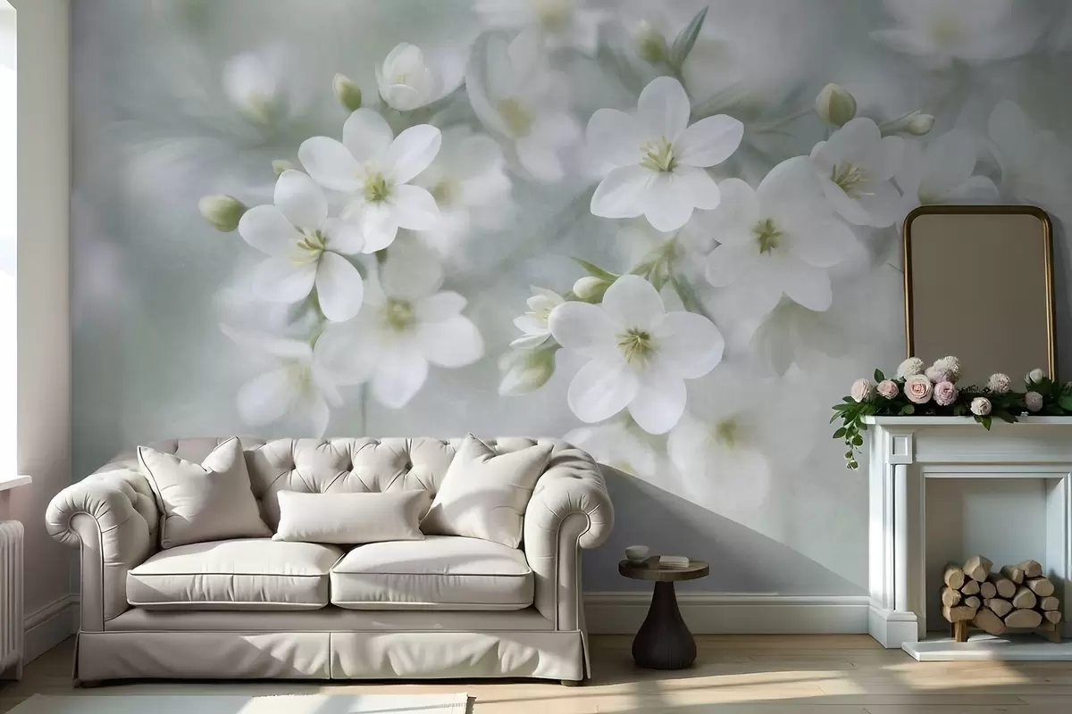 Fotomurales Flores blancas de textura delicada, difuminadas suavemente en el fondo Nr. w09759